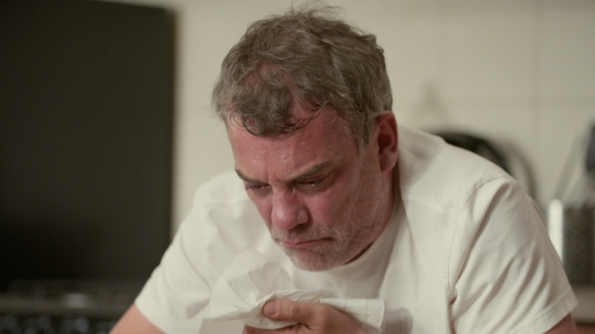 However, due to the anti-alcohol pellet in his body, the real estate broker suffers a disgusting physical reaction, a scene that leaves his son deeply worried.