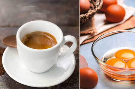 - Pour the hot coffee over the beaten yolk.