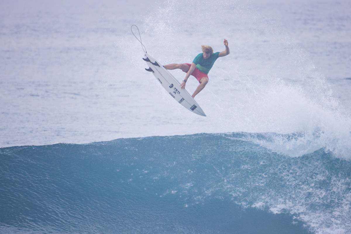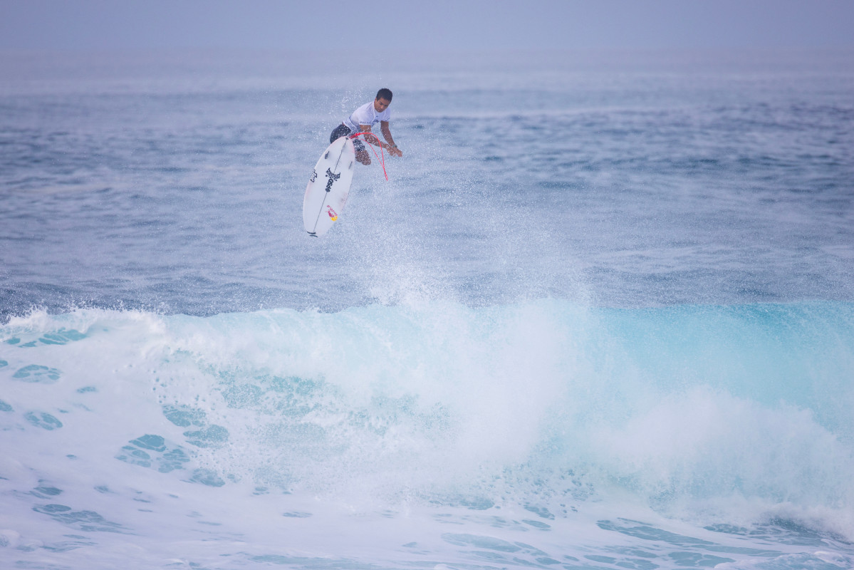 John found himself in fourth place and under priority. So of course he muscled through a crumbling barrel that went through the sandbar, then stomped a solid air reverse for good measure. Judges gave John a 9, pushing him to second. Meanwhile, Luke, who’d impressed all event long with clutch rides and sharp turns, left Gums for Backdoor and found a late drop at the end of the heat. It was solid, but the barrel was filled with white-water and chandeliered as he came out the doggy door. A good ride, but not enough to overtake John John. Luke bowed out, but take note of this 19-year-old. He is one to watch on the North Shore and beyond.