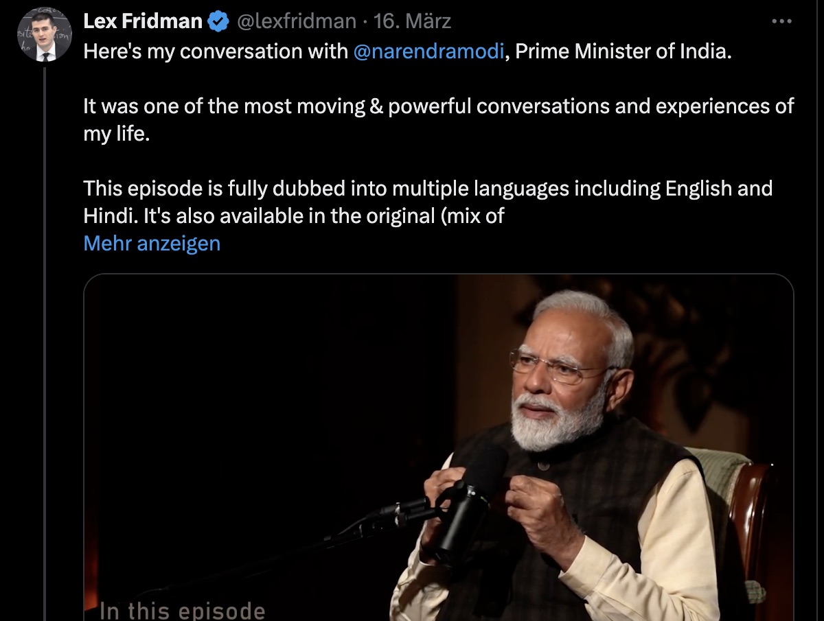 marks a significant step in utilizing new media for diplomatic outreach. This podcast, renowned for its focus on AI and intellectual discourse, boasts a substantial following, with Fridman himself having over 4.2 million followers. The Modi podcast has reportedly broken records, distributed globally in English and Hindi, aided by AI-driven translations and dissemination.