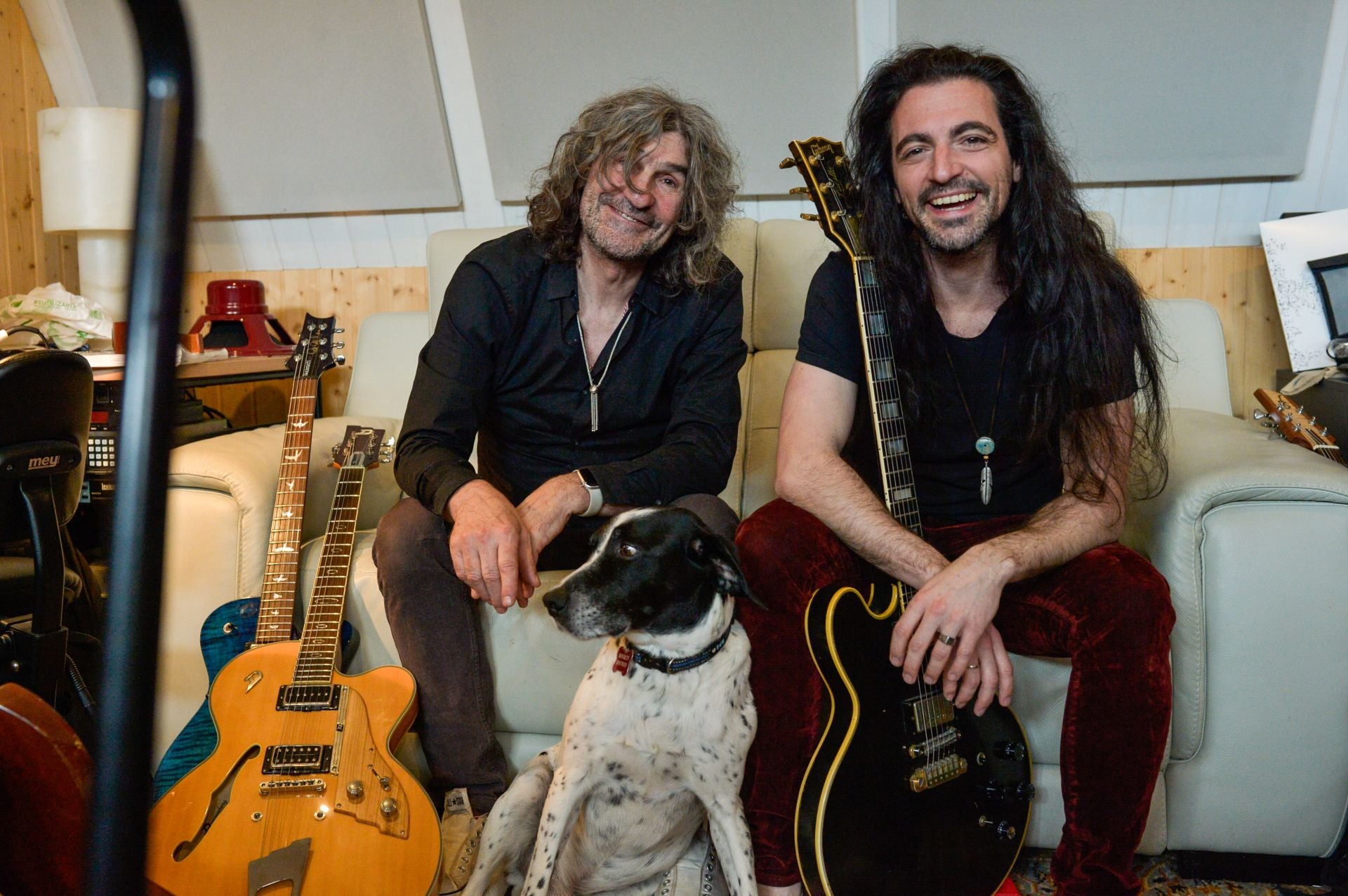 There is no set list yet, he says, but they will play the entire new album and there will be some from Inconscientes, from Platero, from Extrechinato… Not songs from Extremoduro, because he still can’t face them: “It’s all very recent, my body tells me that I don’t feel like it, although we’ll do some winking.” The members of that band who are in Rebrote agree on this point: José Ignacio Cantera (drums) and Miguel Colina (bass). In addition, it is made up of Jaime Tejedor (guitar), Iñigo López (piano and backing vocals) and Jaime Moreno, singer, guitarist and composer half with Uoho of the first Rebrote album. They both attend the Bilbao native’s home-studio in Sopelana, with orange trees, a dog (Happy) and cats (Tina and Monchito), about forty guitars and a handful of basses, a baby grand piano, an instrument he studied at the conservatory… Well, Uoho is a classically trained man, multi-instrumentalist, composer and producer. Philosophy reader and many more things. The original sign of the late Umore Ona, a bar on Esperanza Street home to rockers, hangs from the entrance door to the recording studio, where Rebrote is rehearsing around the clock with a view to the imminent gigs after time lost due to illness.